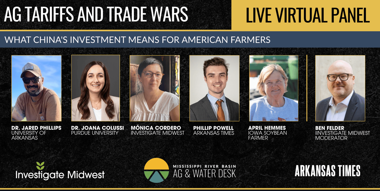 The discussion builds on recent investigative reporting by Investigate Midwest and the Arkansas Times that has documented China's multi-million investment in ports and agricultural infrastructure across Latin America, including Brazil and Peru, as well as the impacts of tariffs and trade wars on U.S. farmers in states across the Midwest.