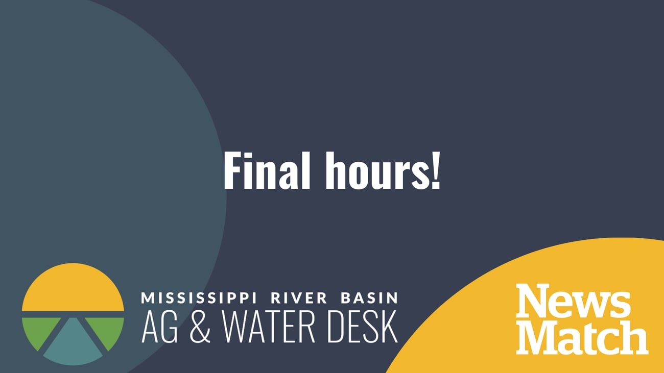 We appreciate your patience with these extra asks at this time of year. Today is an important day. We're in the final hours of our fundraising campaign, which supports key programs at the Desk, including grants for professional development, field reporting, and equipment for our team spread across the Mississippi River Basin.