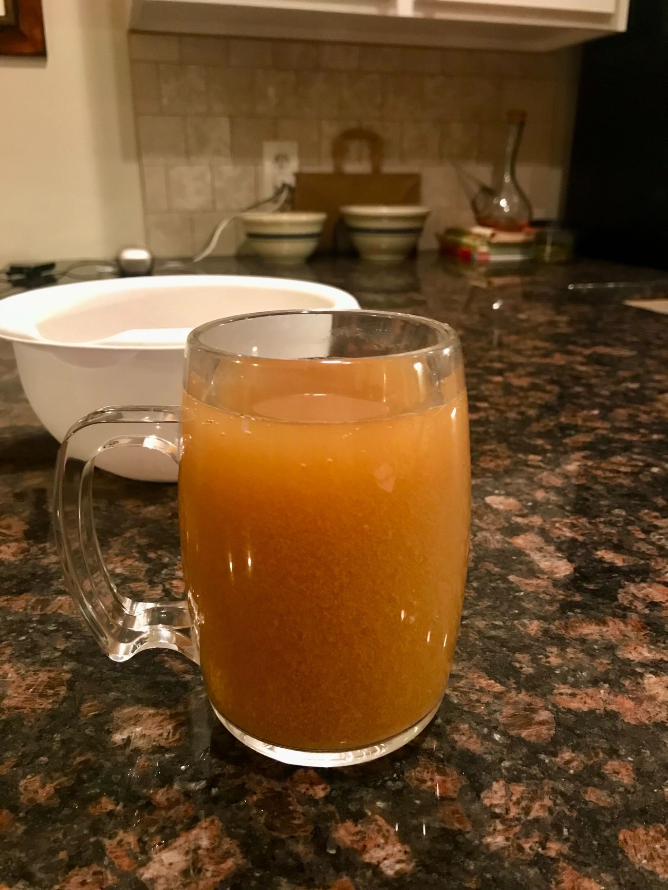 Coffee-colored water from Donald Wood’s tap sits in a clear glass mug on his home’s countertop in 2024. (Courtesy of Donald Wood)